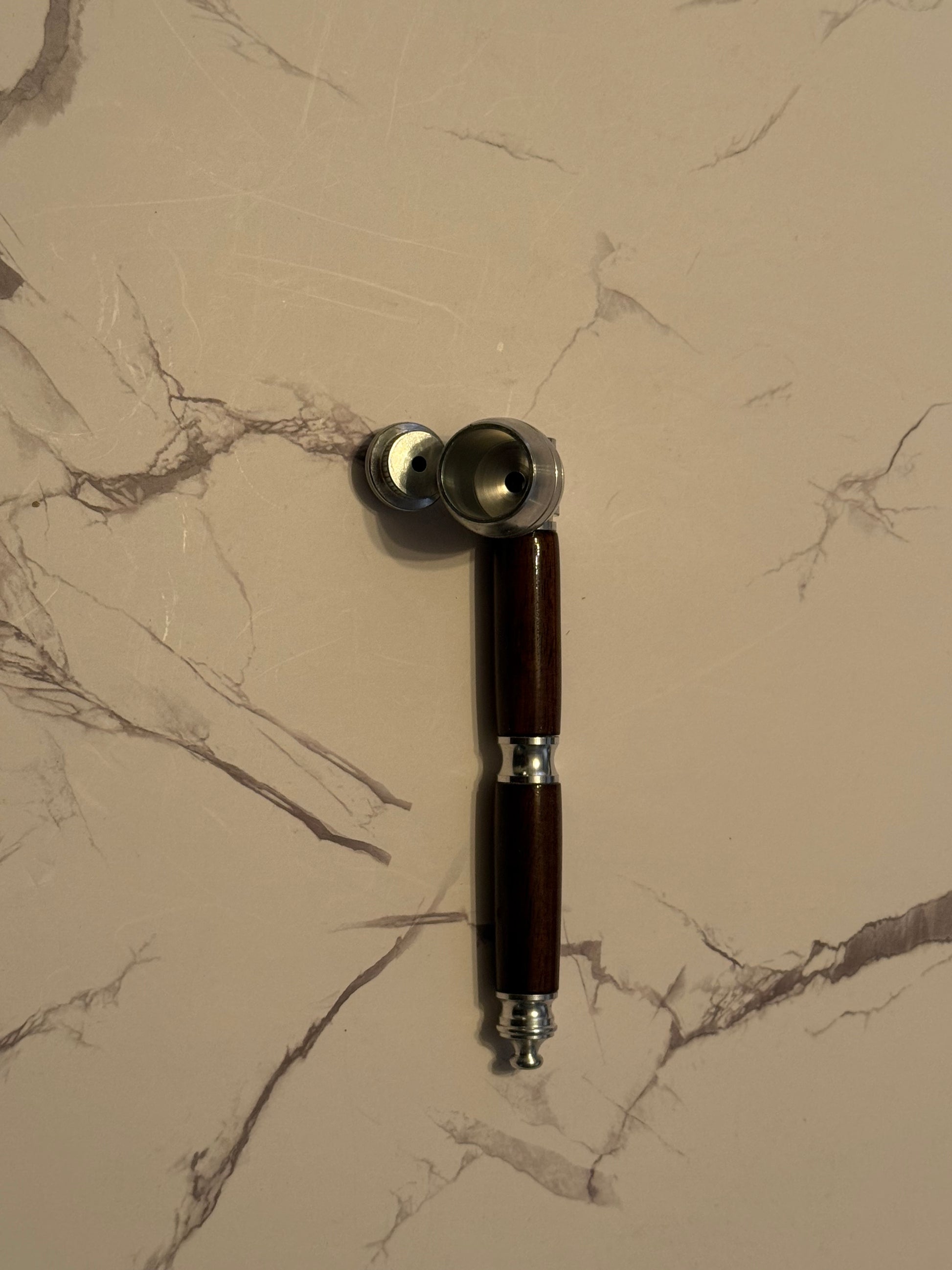 This XL jumbo bowl smoking pipe showcases masterful hand-turning craftsmanship using premium black walnut wood. The generous bowl capacity accommodates extended smoking sessions, while the natural grain and rich dark finish of walnut provide both aesthetic appeal and durability. Each piece is individually turned, ensuring a unique smoking experience with smooth, comfortable handling. Black walnut's density and heat resistance make it an ideal choice for pipe construction, offering reliable performance session after session.